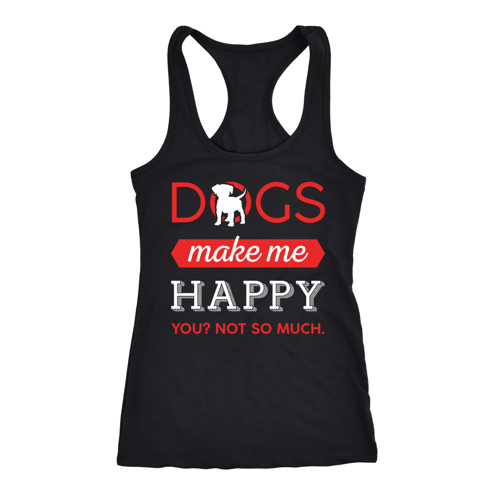 Buy awesome Funny Dogs clothing for the one you know, the one you love, the one you work with or the one with you are related to! Everyone is going to LOVE this high quality apparel! The quote on the item reads: Dogs make me happy. You? Not so much.