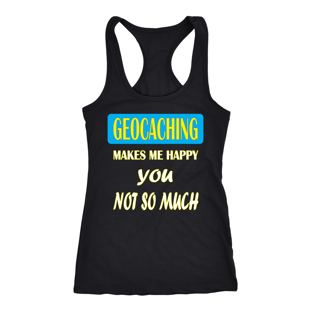 Buy awesome Geocaching clothing for the one you know, the one you love, the one you work with or the one with you are related to! Everyone is going to LOVE this high quality apparel! The quote on the item reads: Geocaching makes me happy you not so much