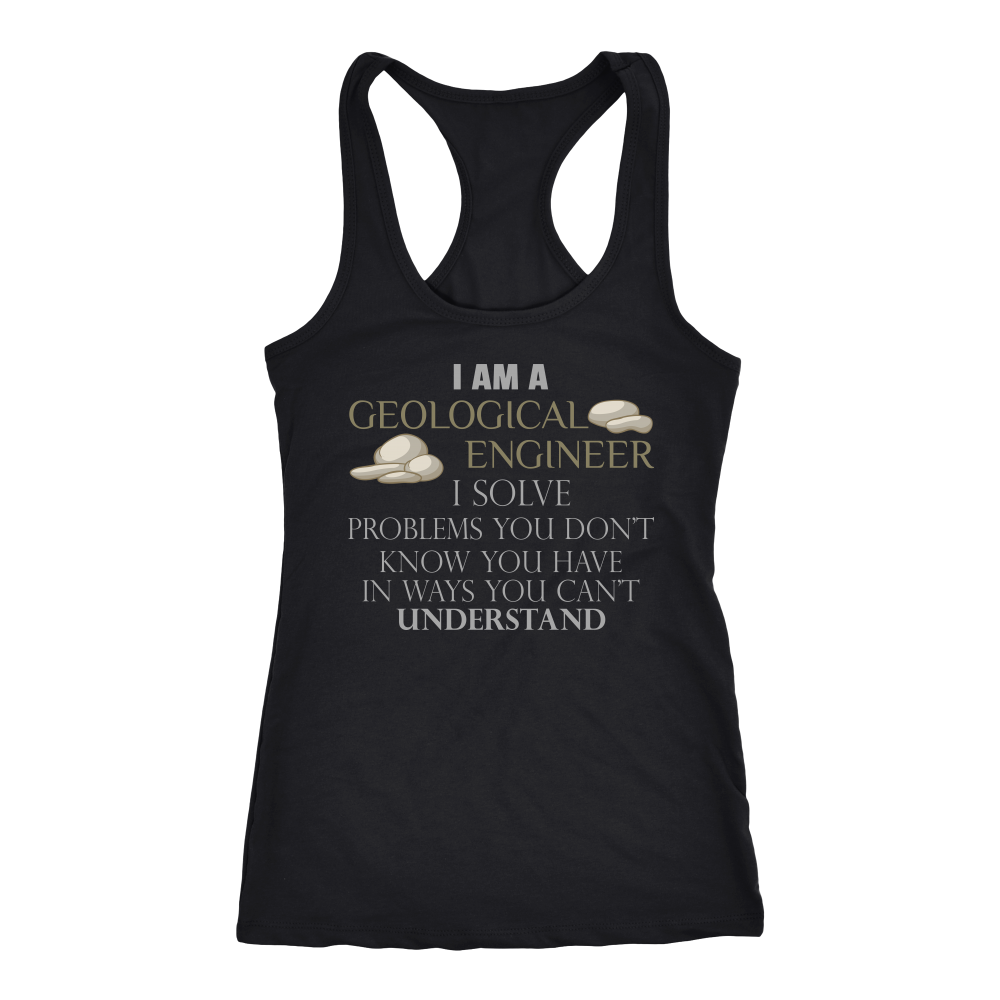 Buy awesome Geological Engineer clothing for the one you know, the one you love, the one you work with or the one with you are related to! Everyone is going to LOVE this high quality apparel! The quote on the item reads: I am a Geological Engineer I solve problems you don't know you have in ways you can't understand