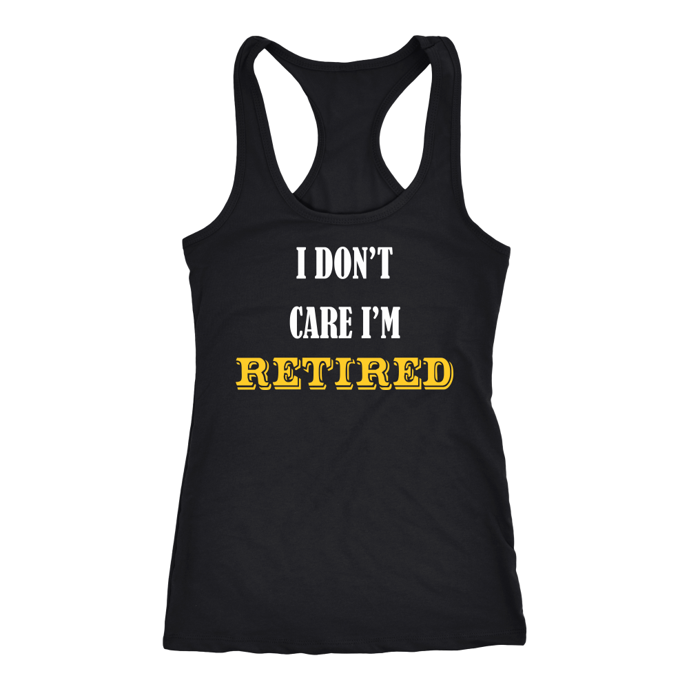 Buy awesome Retired clothing for the one you know, the one you love, the one you work with or the one with you are related to! Everyone is going to LOVE this high quality apparel! The quote on the item reads: I Don't Care I'm Retired.