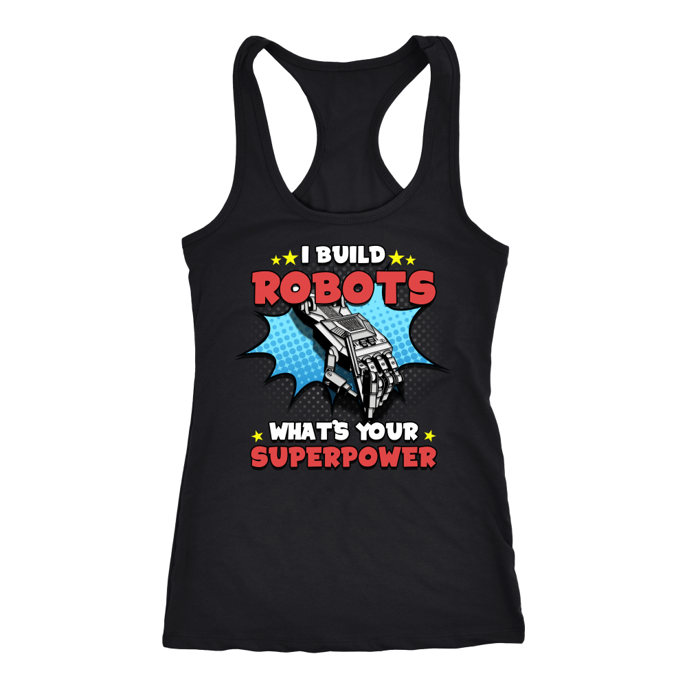 Buy awesome Robotics engineer clothing for the one you know, the one you love, the one you work with or the one with you are related to! Everyone is going to LOVE this high quality apparel! The quote on the item reads: I build robots, what's your superpower