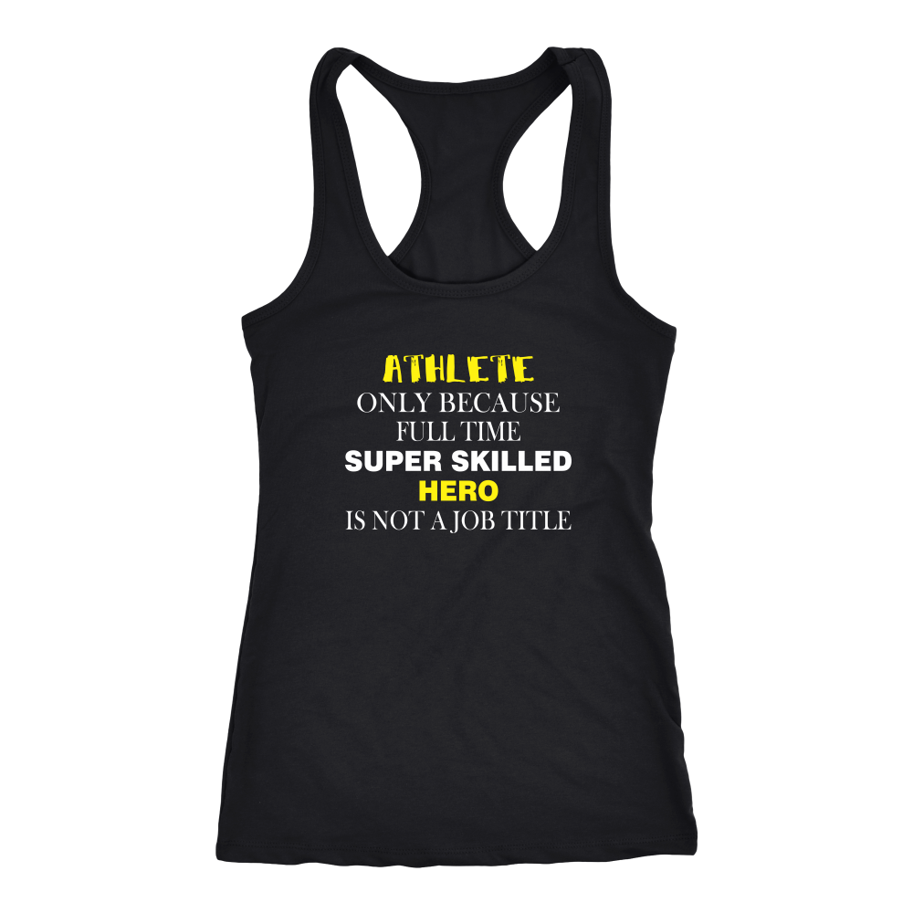 Buy awesome Athlete clothing for the one you know, the one you love, the one you work with or the one with you are related to! Everyone is going to LOVE this high quality apparel! The quote on the item reads: Athlete only because full time super skilled hero is not a job title
