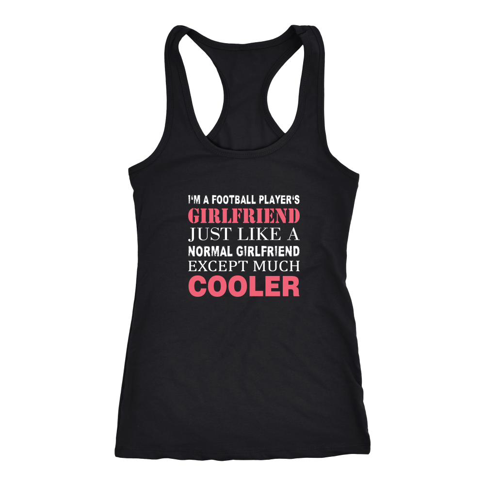 Buy awesome Football Player's clothing for the one you know, the one you love, the one you work with or the one with you are related to! Everyone is going to LOVE this high quality apparel! The quote on the item reads: I'm a football player's girlfriend just like a normal girlfriend except much cooler