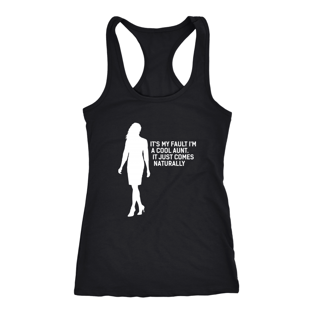 Buy awesome Aunt clothing for the one you know, the one you love, the one you work with or the one with you are related to! Everyone is going to LOVE this high quality apparel! The quote on the item reads: It's my fault I'm a cool aunt. It just comes naturally